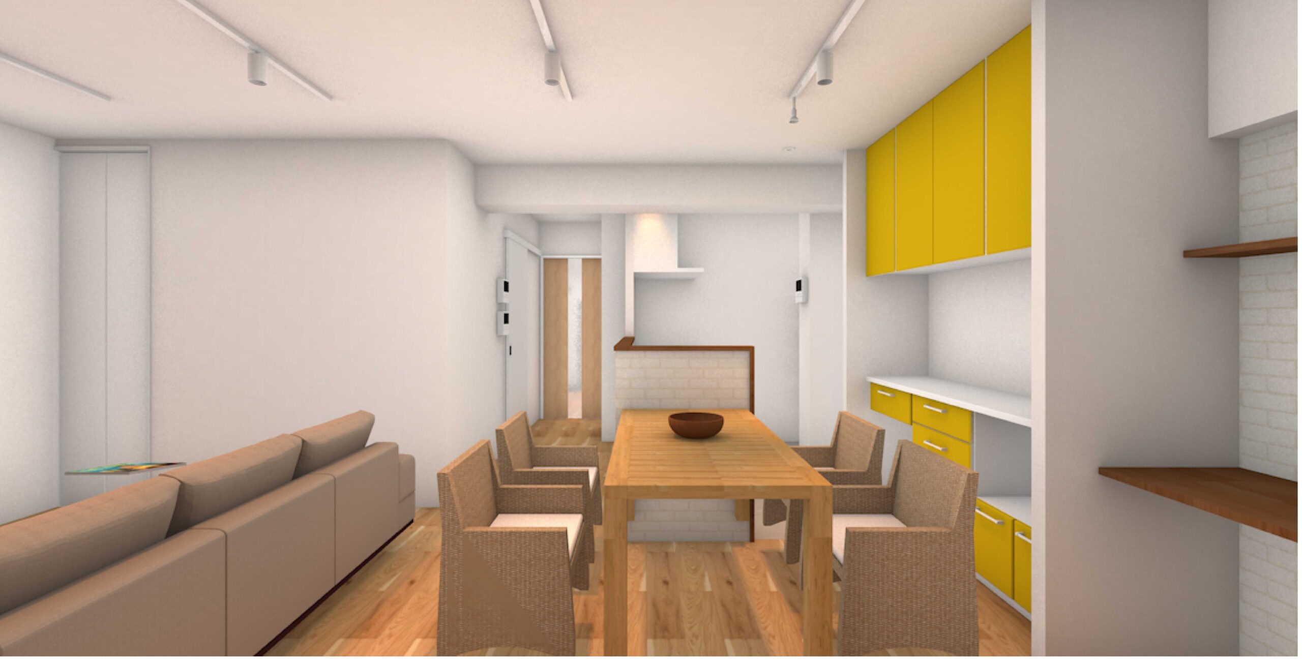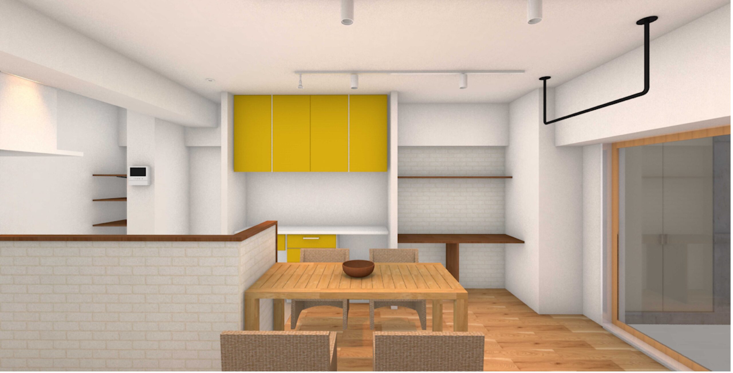 キッチンをブルックリンスタイルにデザインしたプラン。