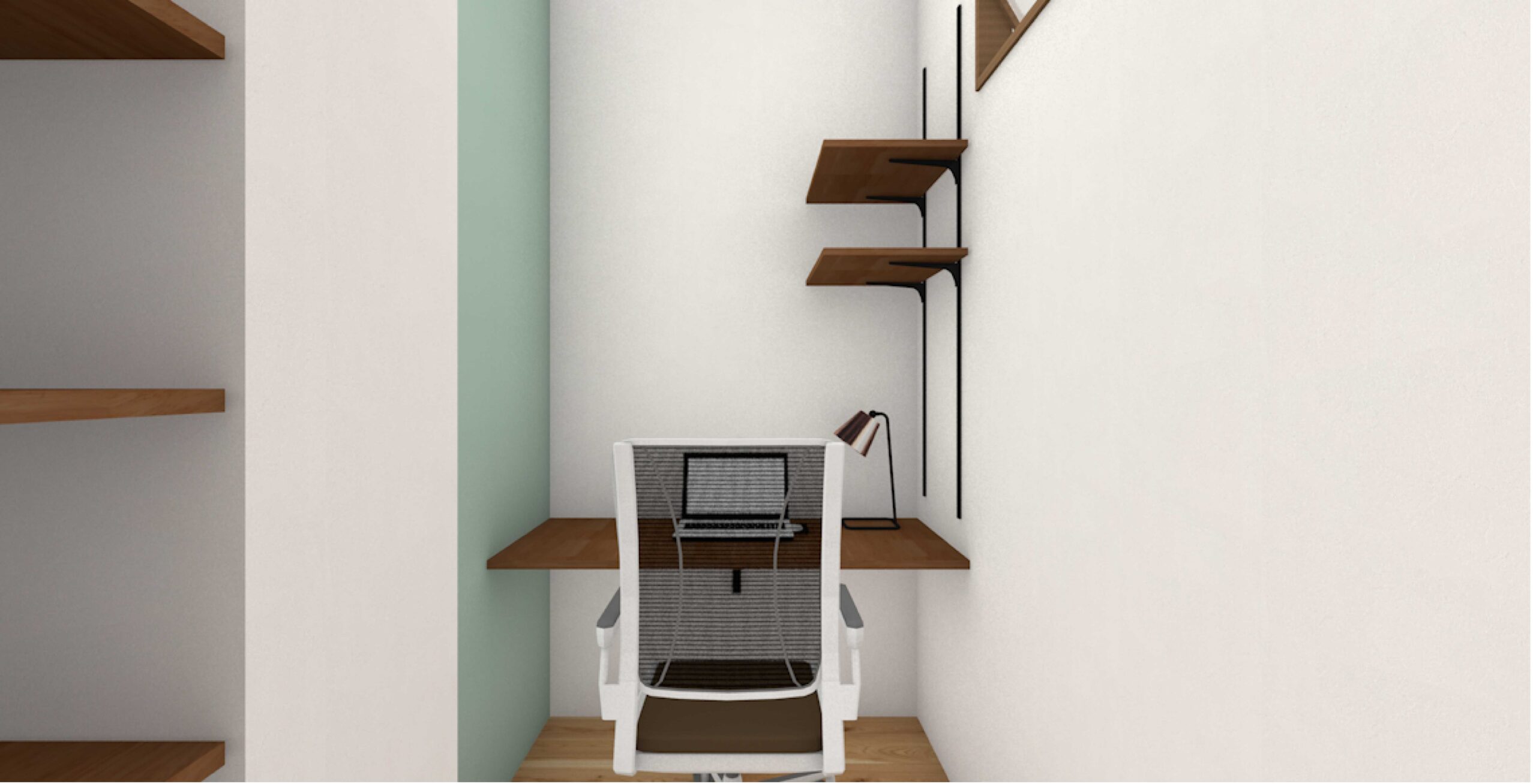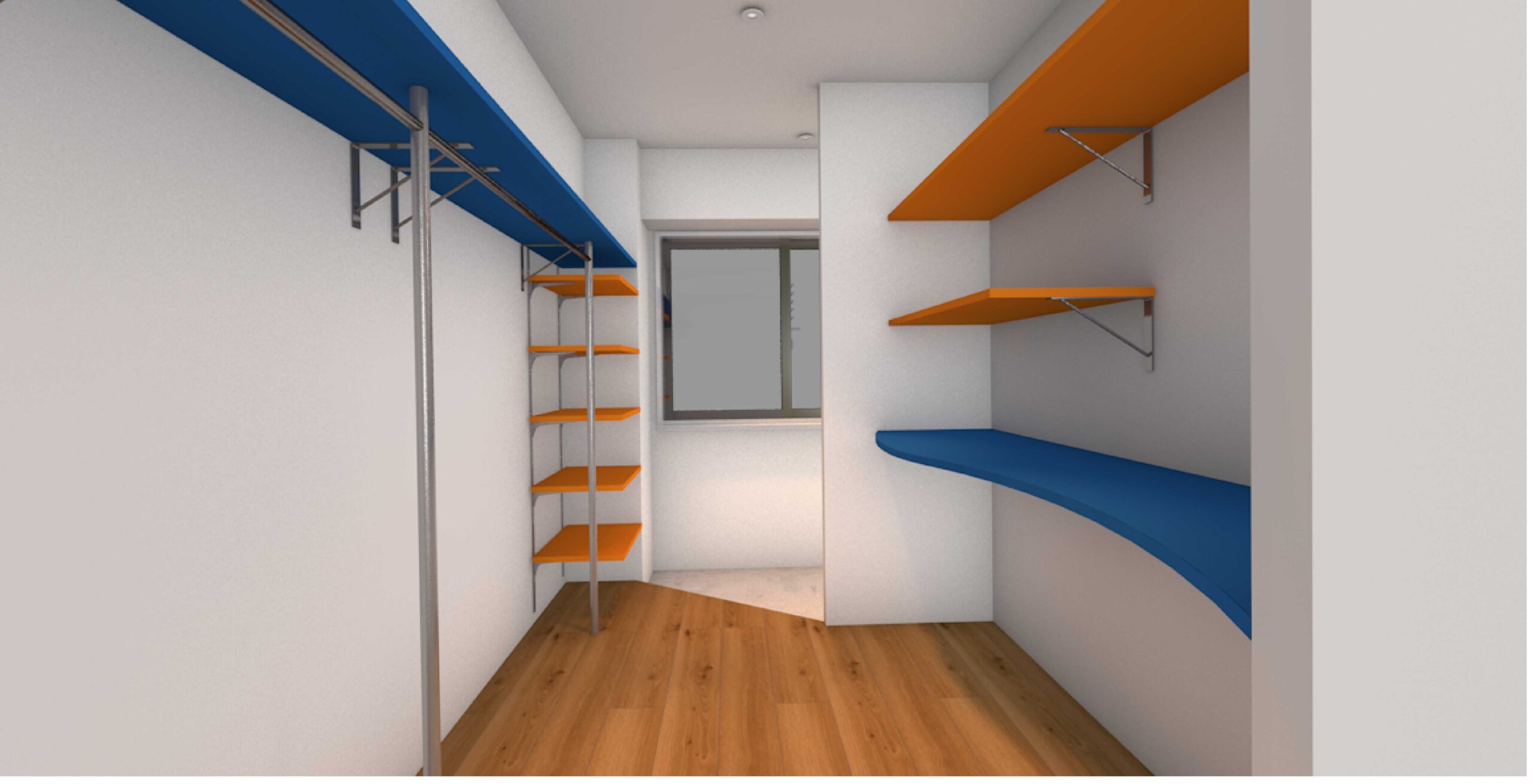 限られたスペースにワークスペースとWICを兼用した空間デザイン。